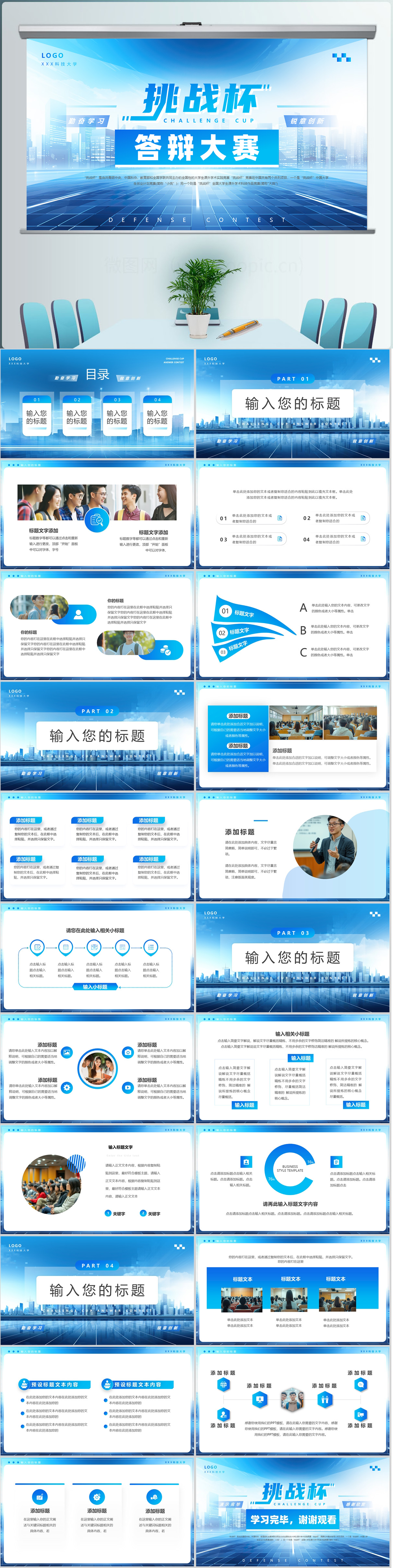 蓝色大气挑战杯答辩大赛通用ppt模板