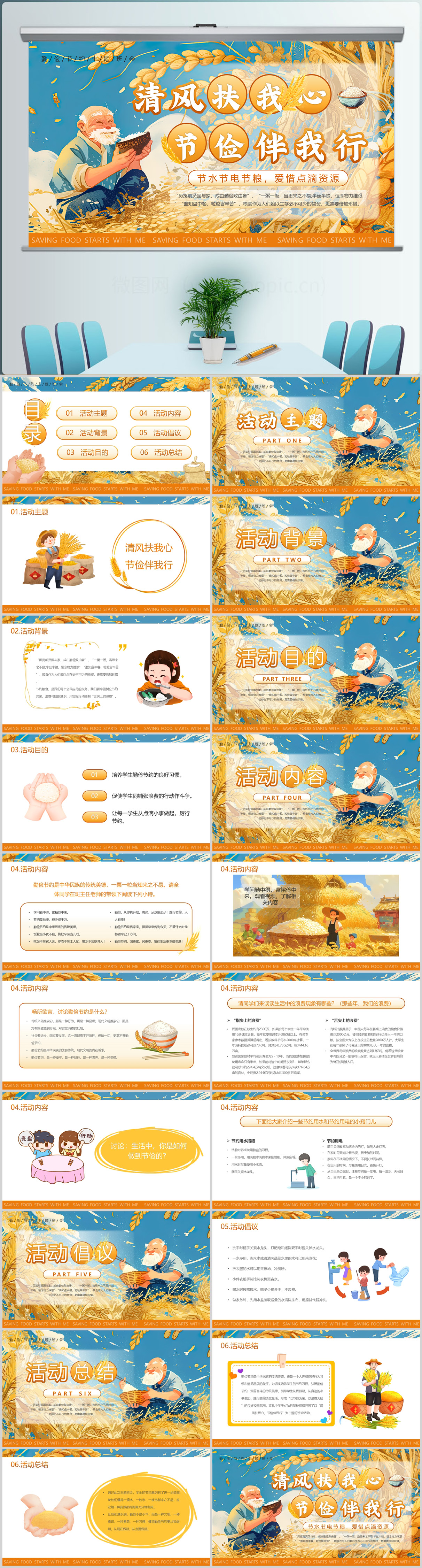 清风扶我心节俭伴我行勤俭节约主题班会课件ppt模板