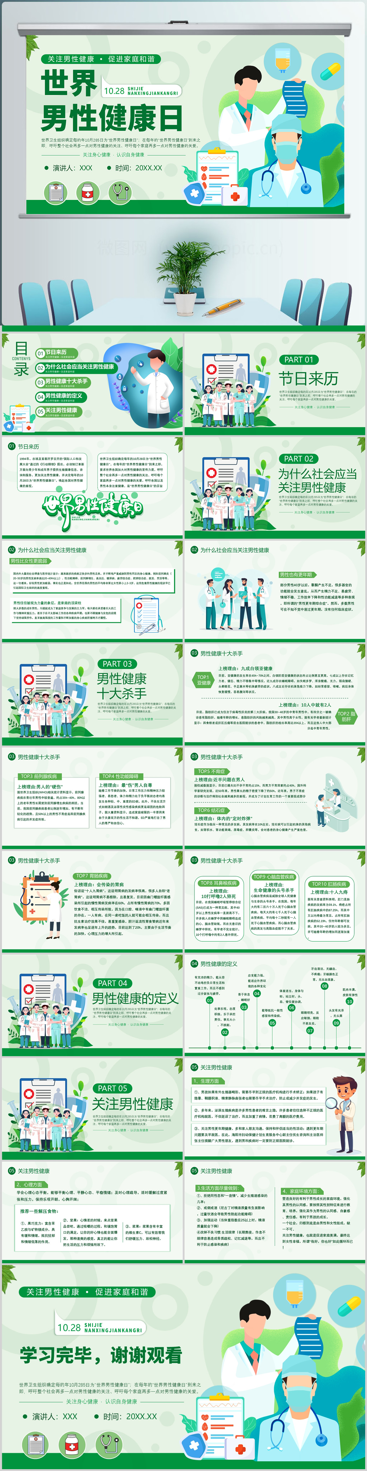绿色扁平风关注男性健康世界男性健康日PPT模板
