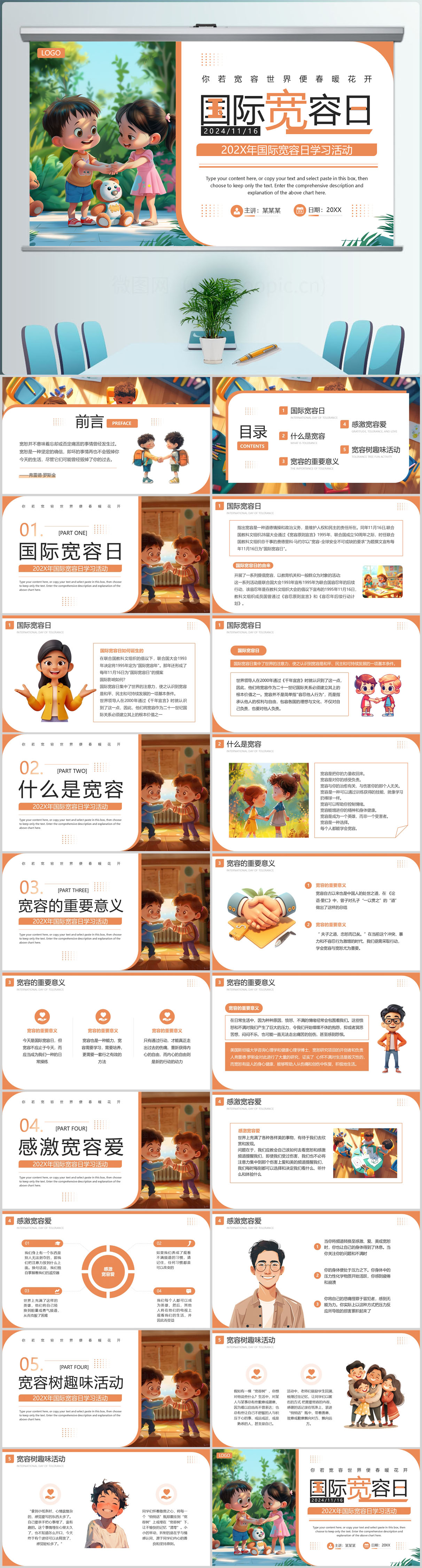 插画风国际宽容日学习活动PPT模板