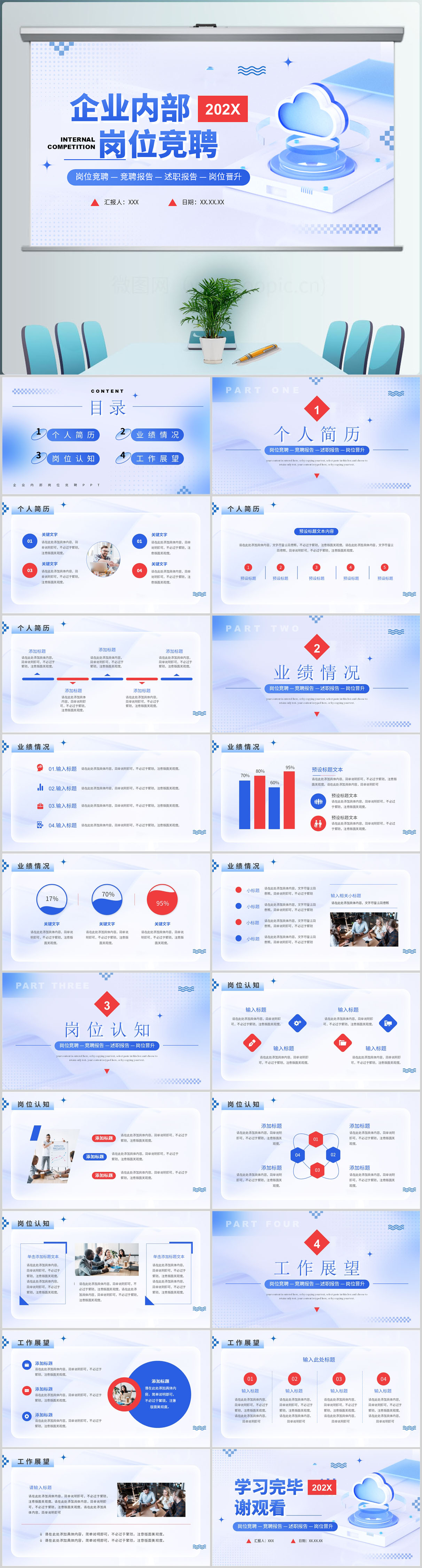 2025蓝色企业内容岗位竞聘工作报告ppt模板