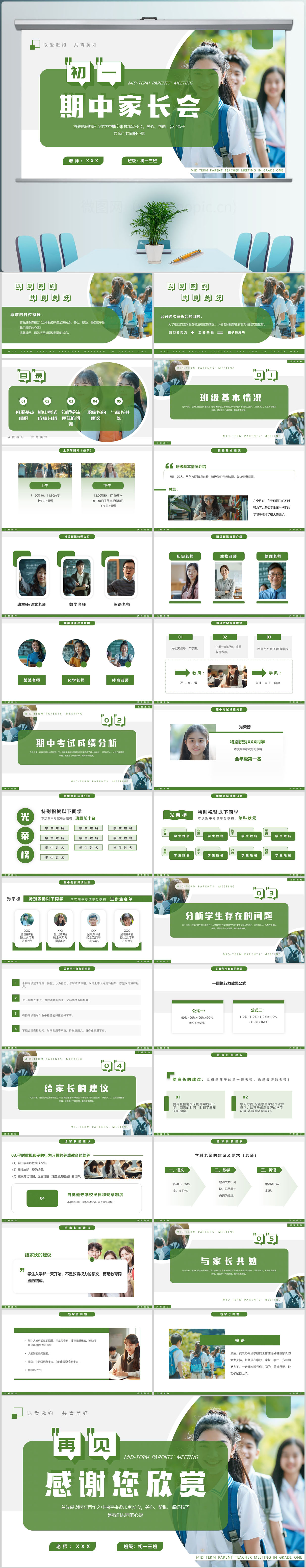 简约风初一期中家长会PPT模板设计