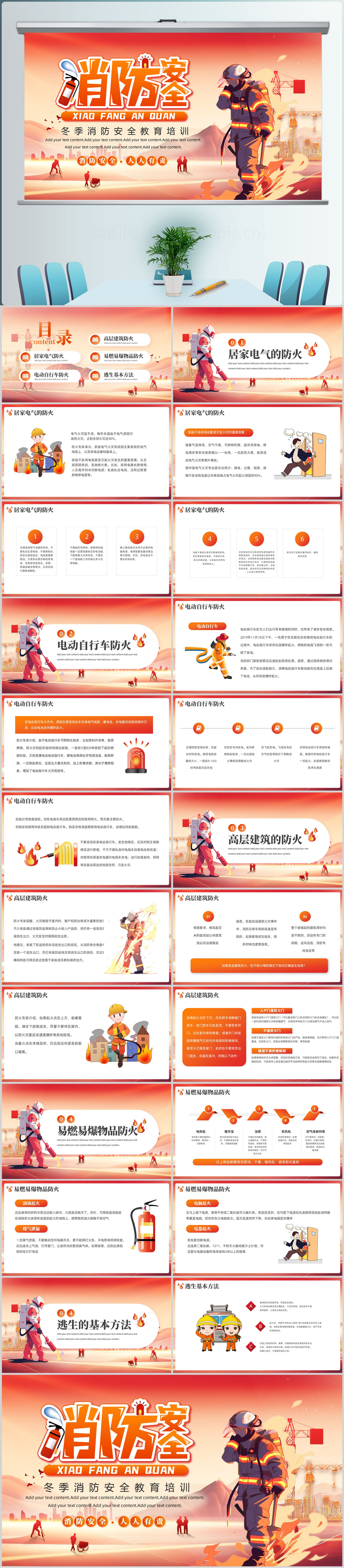 2024冬季119全国消防安全宣传日消防安全教育培训课件ppt模板
