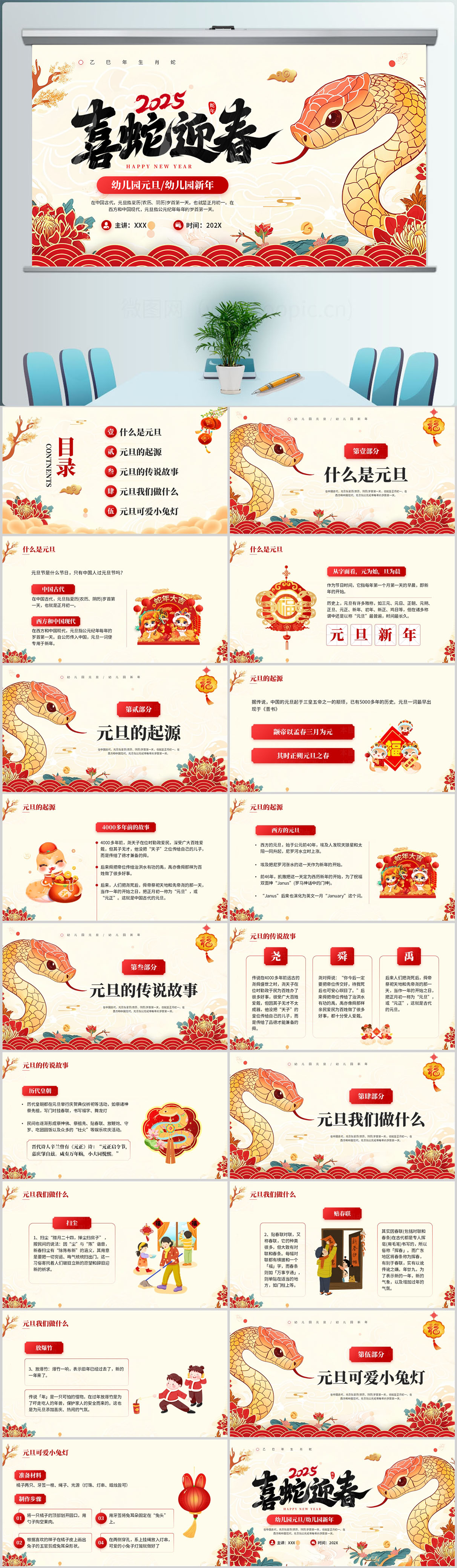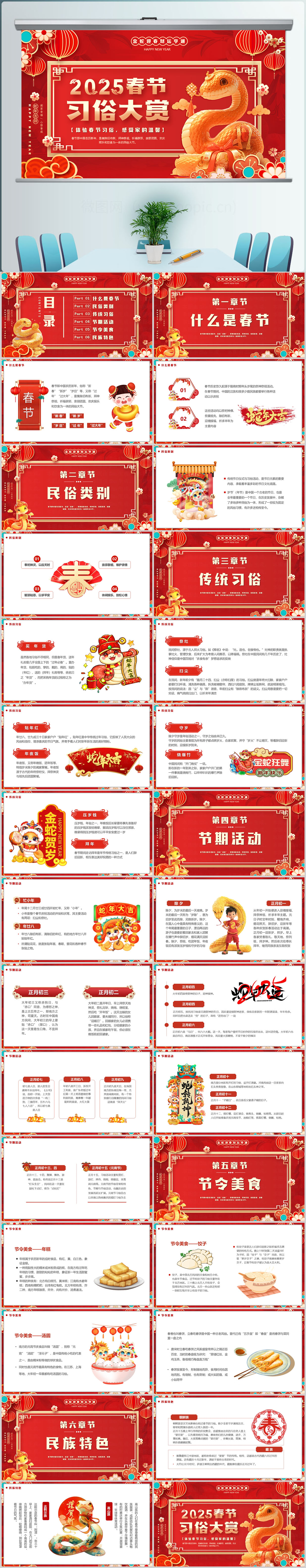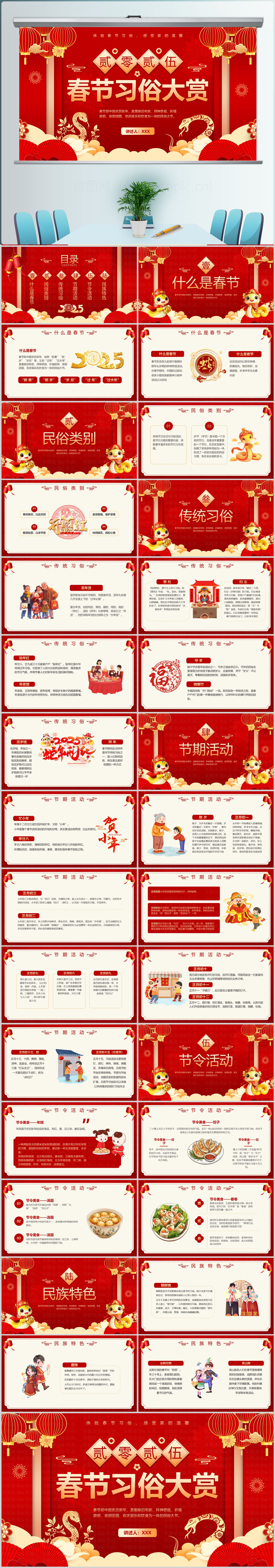 2025年红色中国风春节习俗PPT模板设计