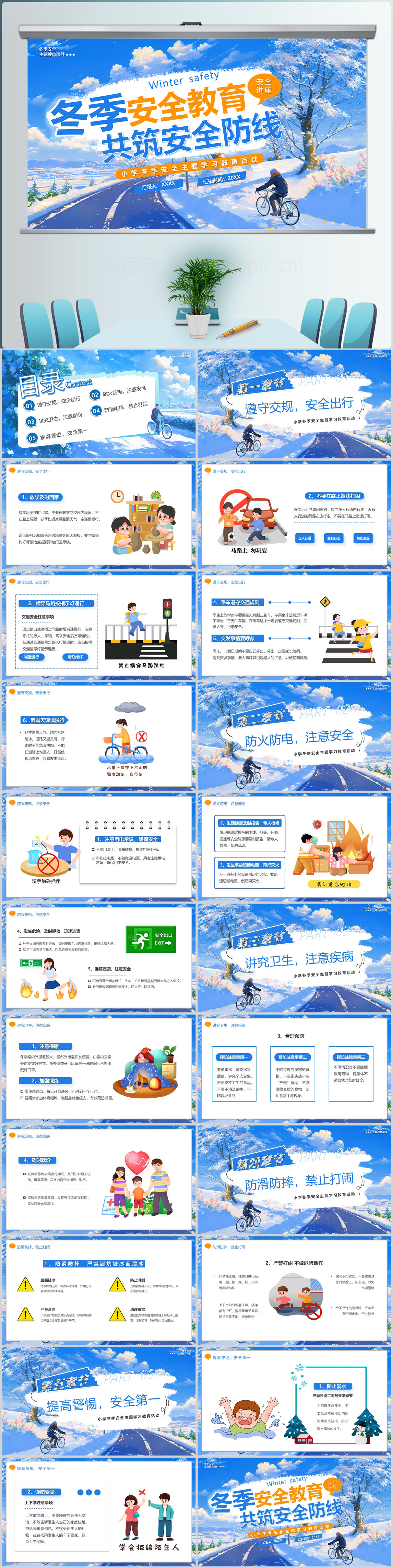 卡通冬季安全教育主题班会PPT模板设计