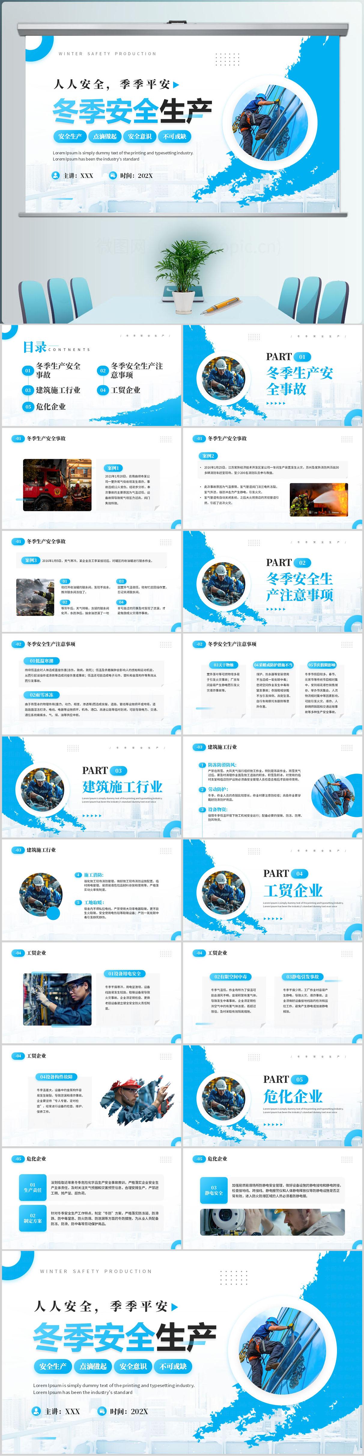 卡通冬季安全生产培训PPT模版设计