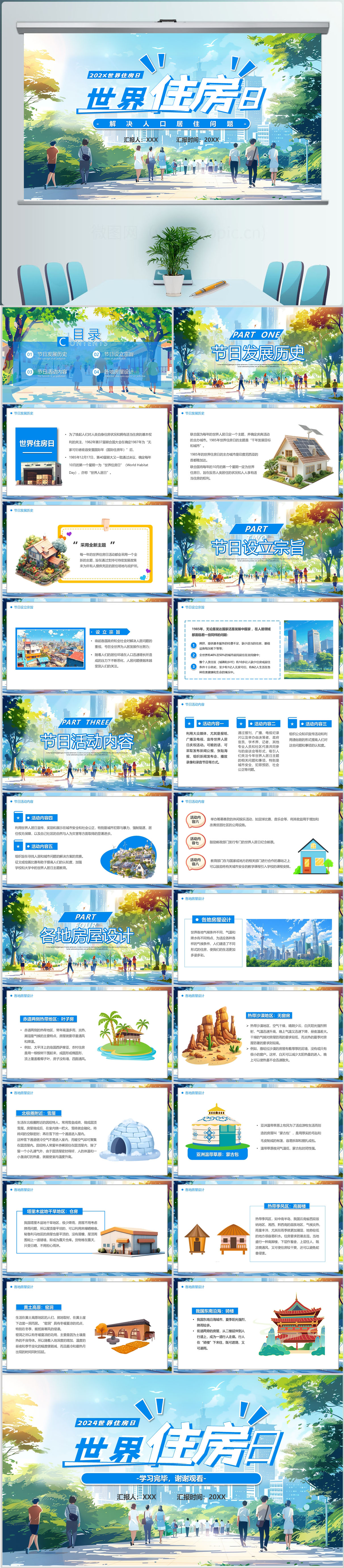 蓝色世界住房日主题宣传介绍ppt模板