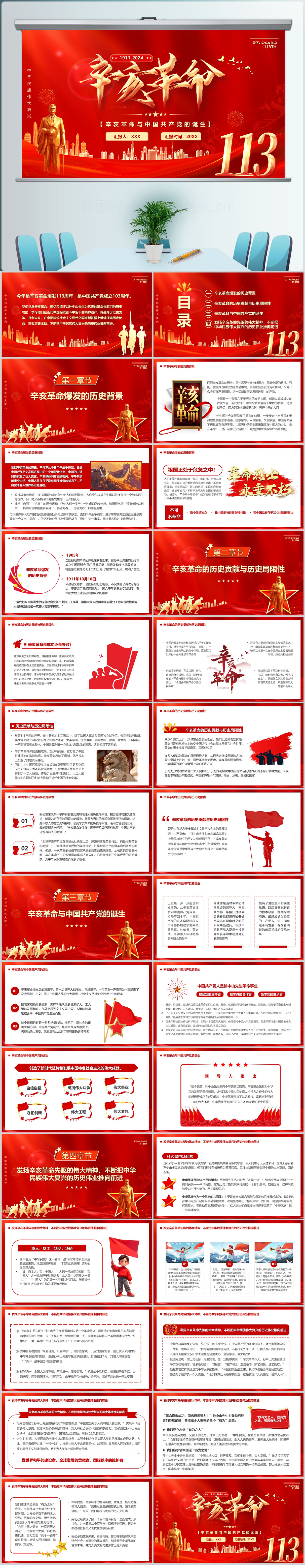红色大气辛亥革命113周年与中国共产党的诞生主题党课ppt模板
