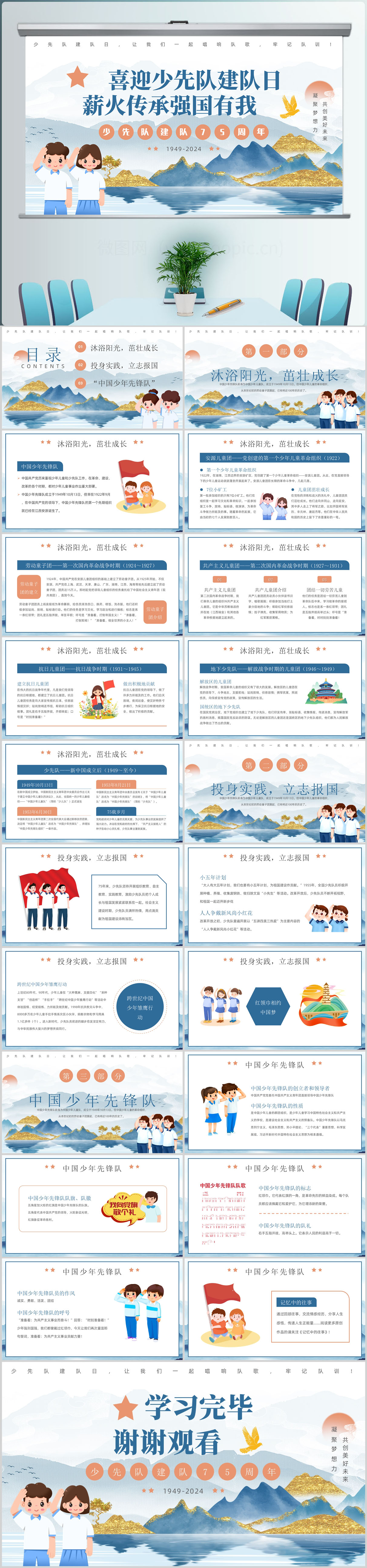 蓝色少先队建队日75周年薪火传承强国有我课件ppt模板