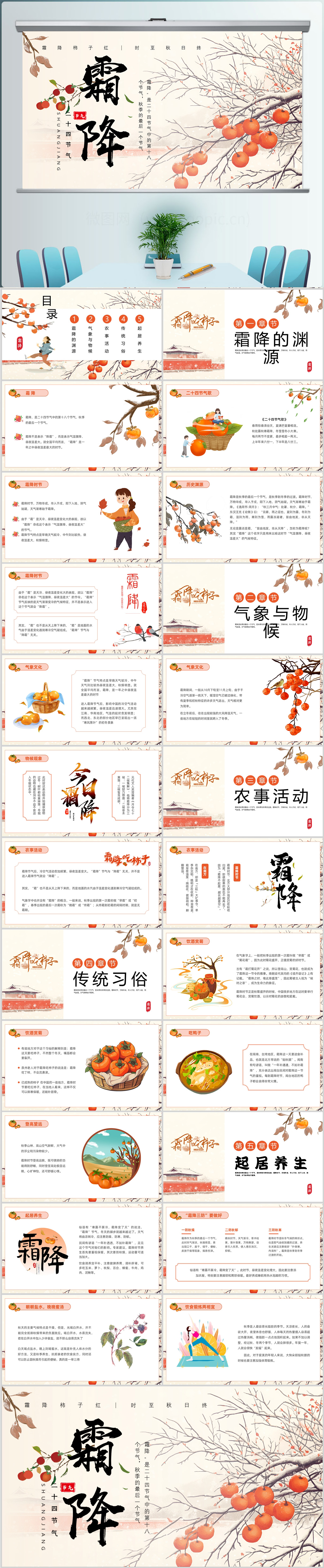 二十四节气之霜降节日介绍ppt模板