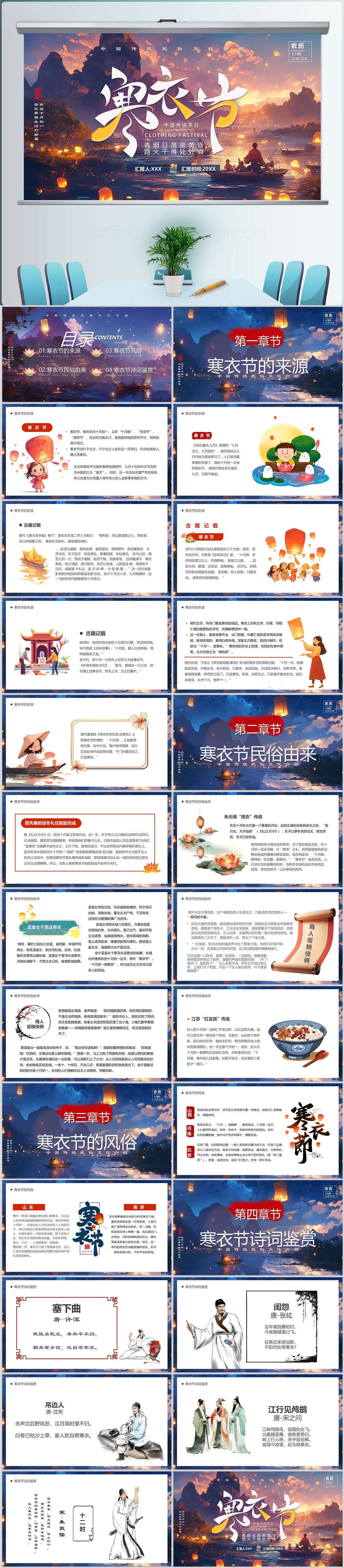 2024中国风传统节日寒衣节介绍PPT模板