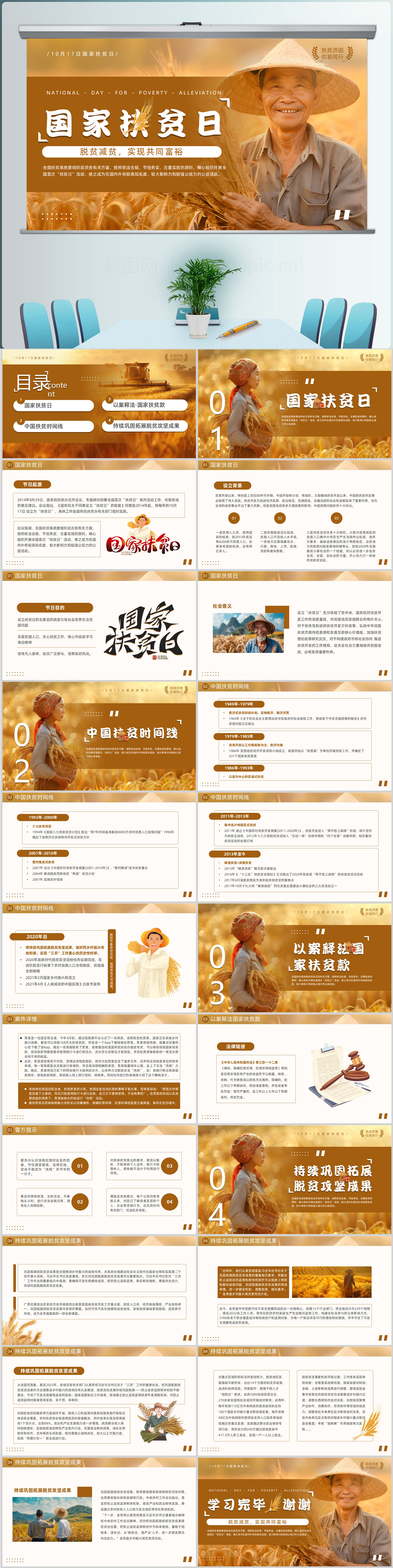 简约风脱贫减贫,实现共同富裕国家扶贫日PPT模板