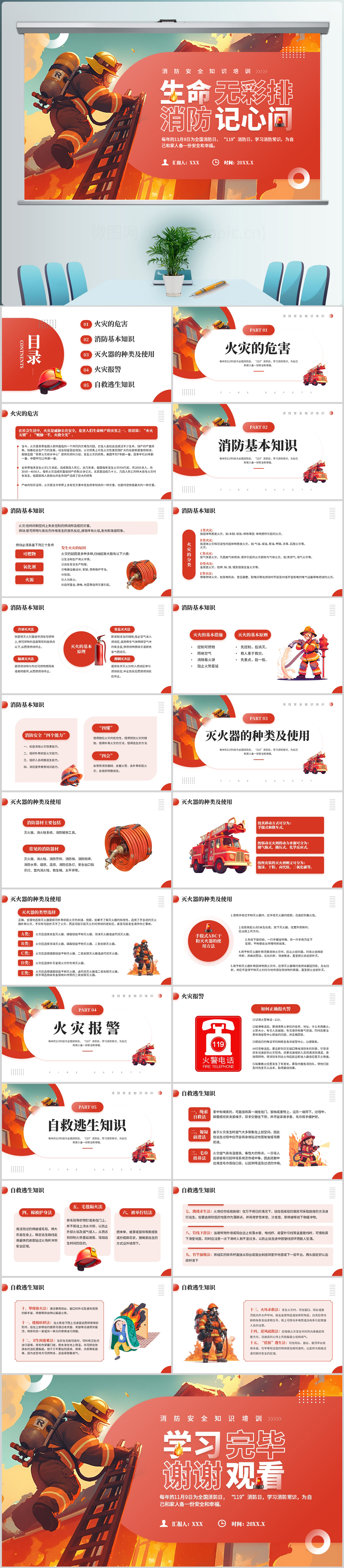 简约119消防宣传日消防安全知识培训课件ppt模板