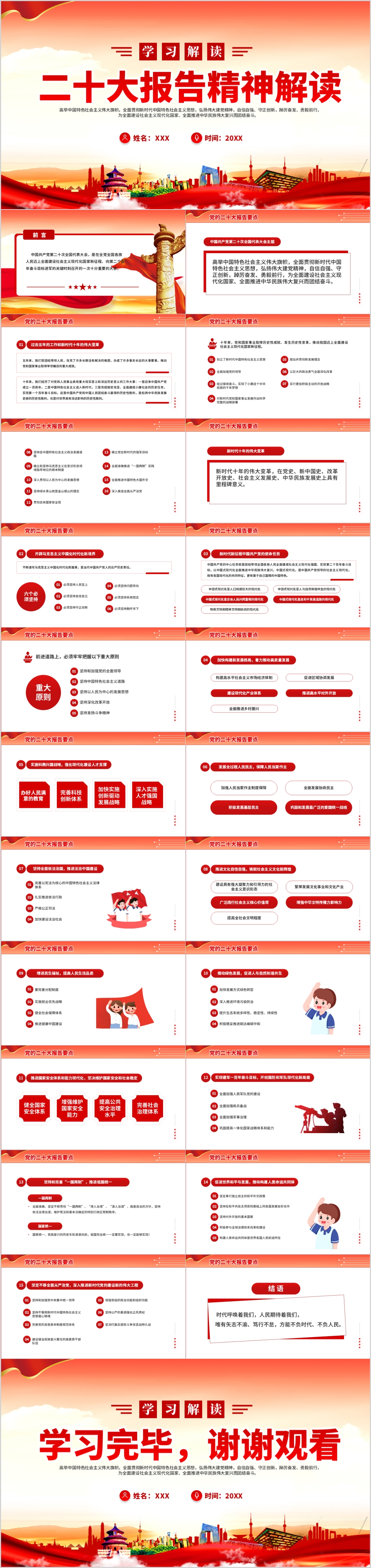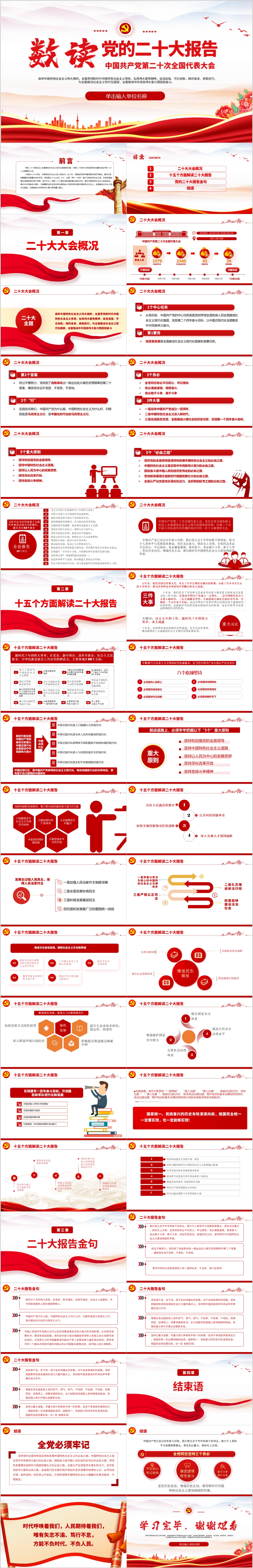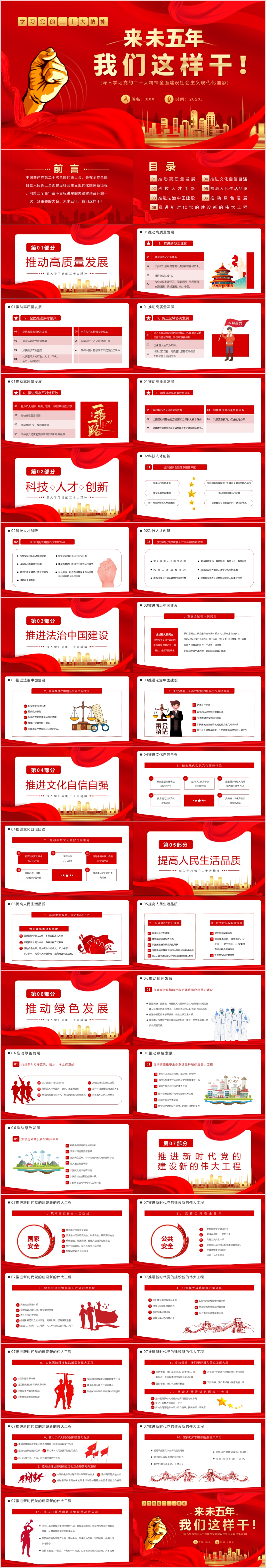 红色党的二十大精神报告学习未来五年这样干ppt模板