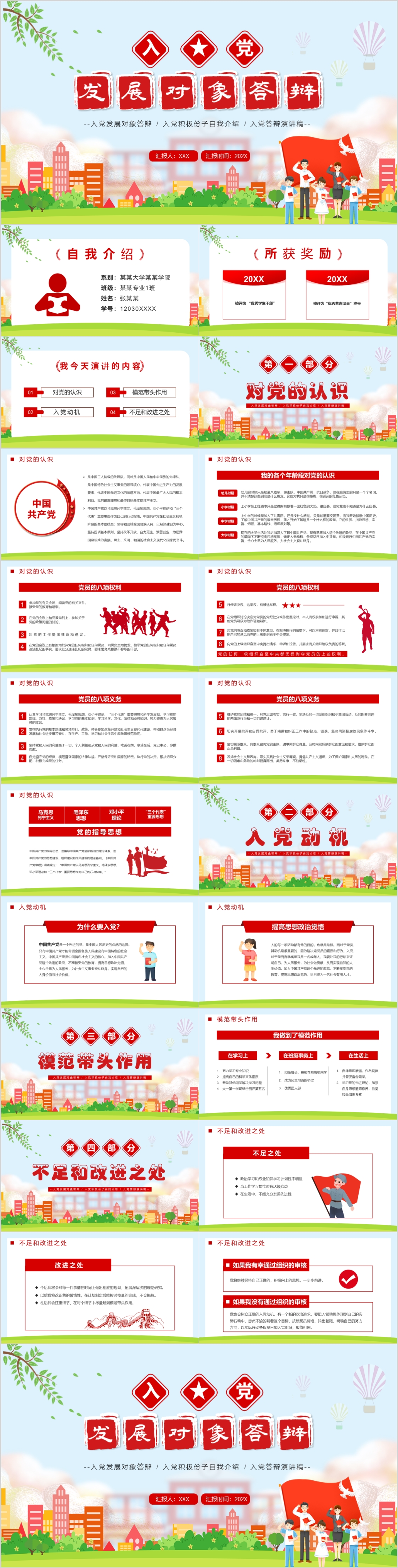 红色入党发展对象自我介绍演讲稿入党答辩PPT模板