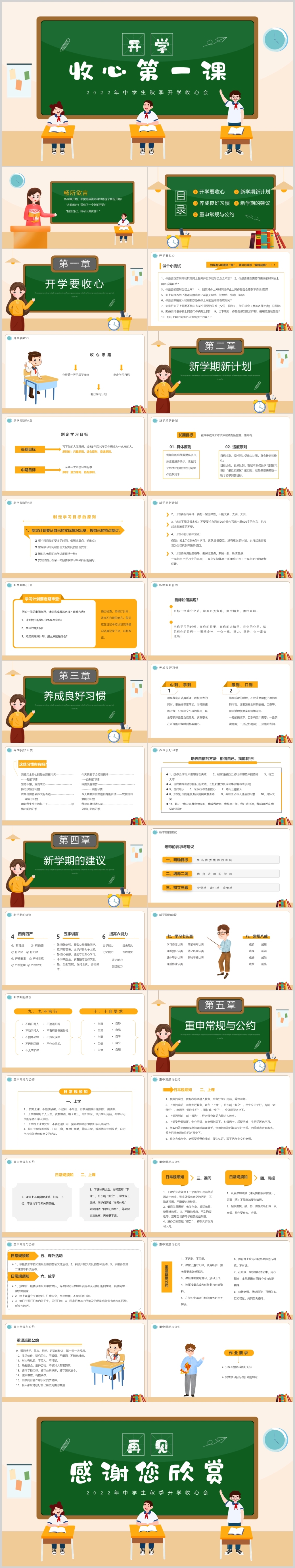 2022年黑板风格中小学生秋季开学收心第一课主题班会PPT模板