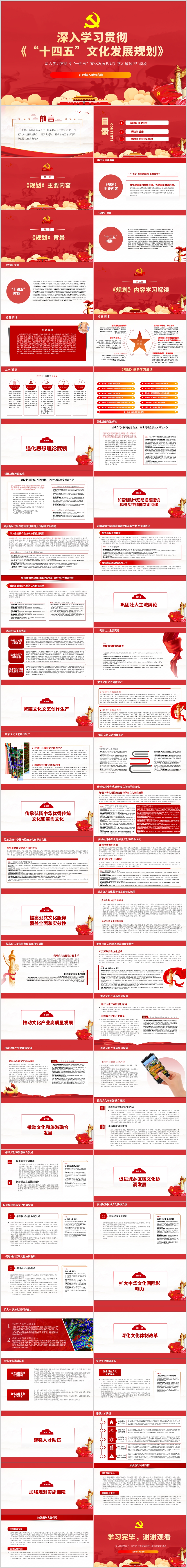 学习《“十四五”文化发展规划》解读ppt模板(内含WORD演讲稿)