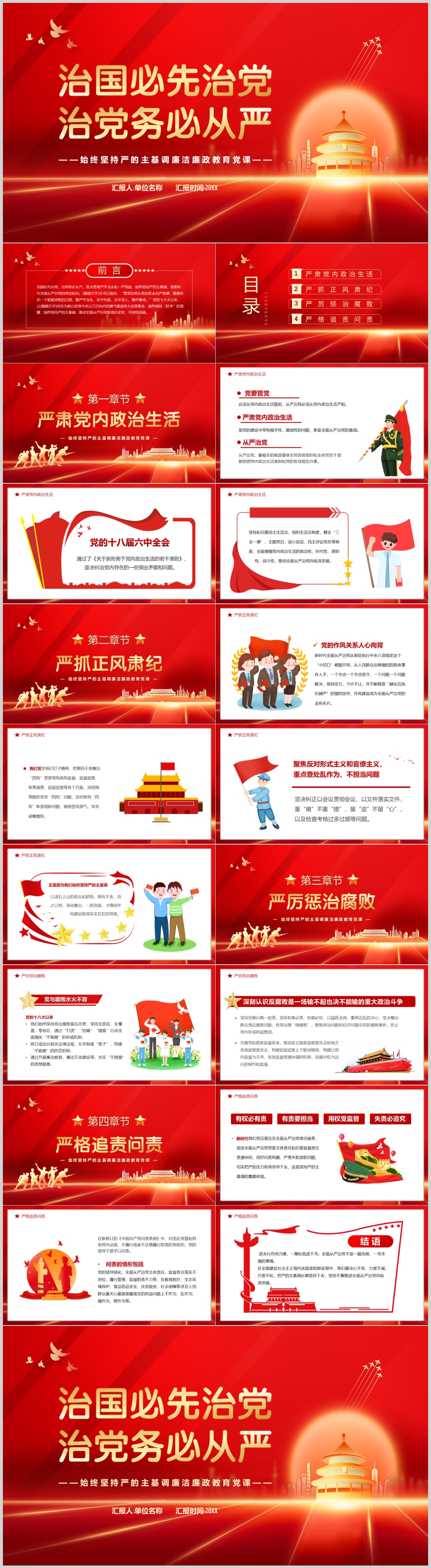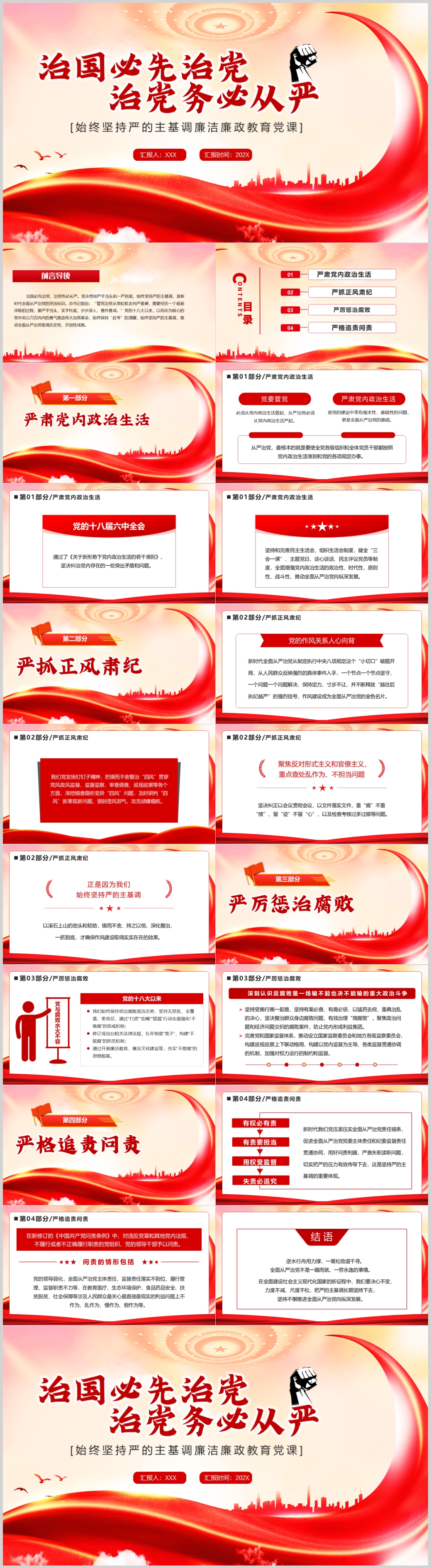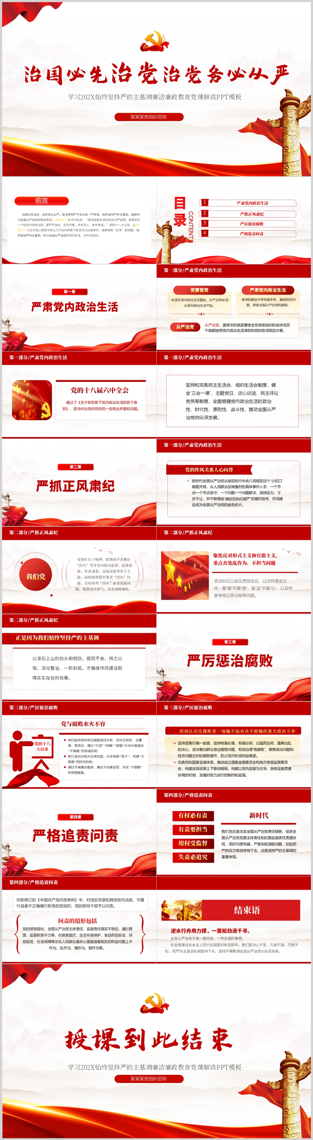 2022从严治党党内生活党风廉洁廉政教育党课PPT模板(内含WORD演讲稿)