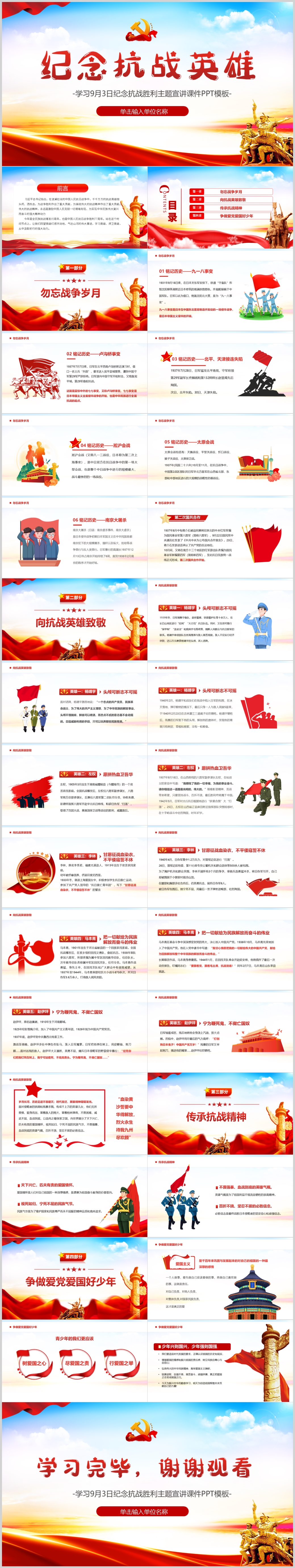 学习9月3日纪念抗战胜利主题宣讲课件PPT模板