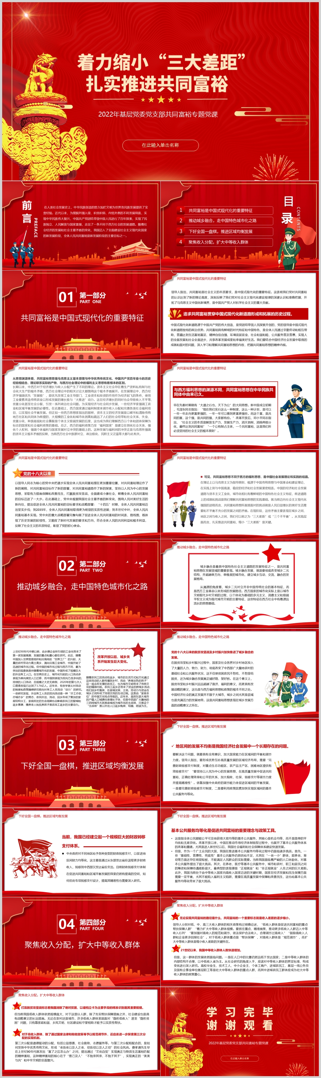2022年着力缩小“三大差距” 扎实推进共同富裕党课ppt模板(内含WORD演讲稿)