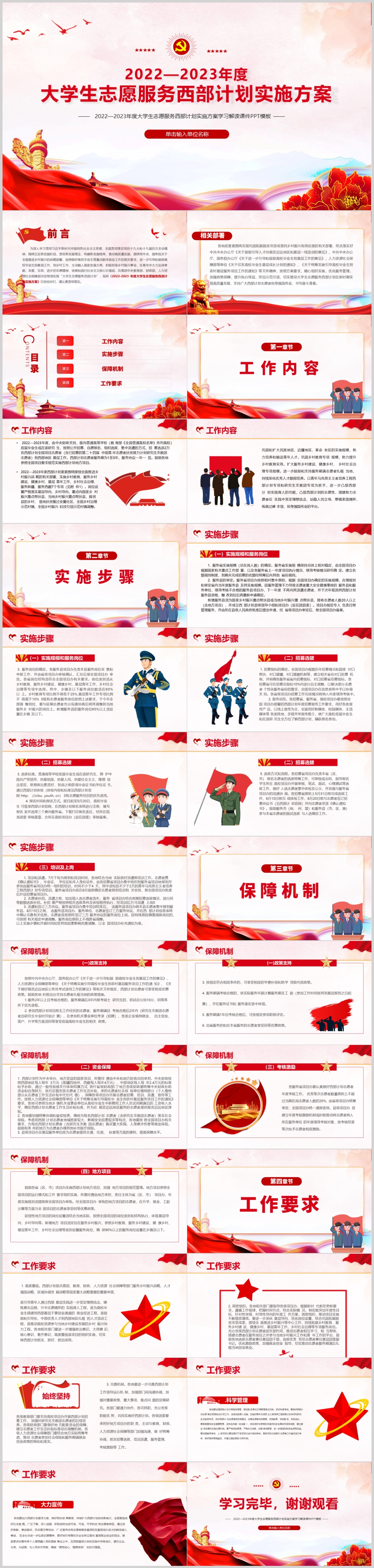 2022—2023年度大学生志愿服务西部计划实施方案党课PPT模板(内含WORD演讲稿)