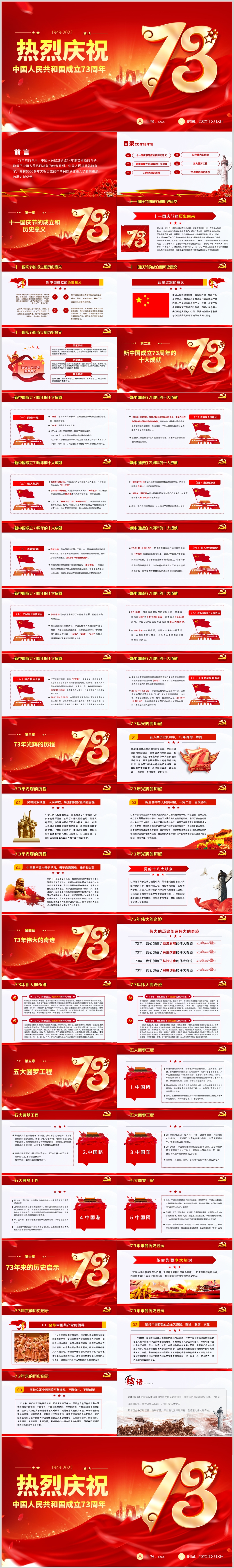 红色十一国庆节新中国成立73周年主题党课PPT模板