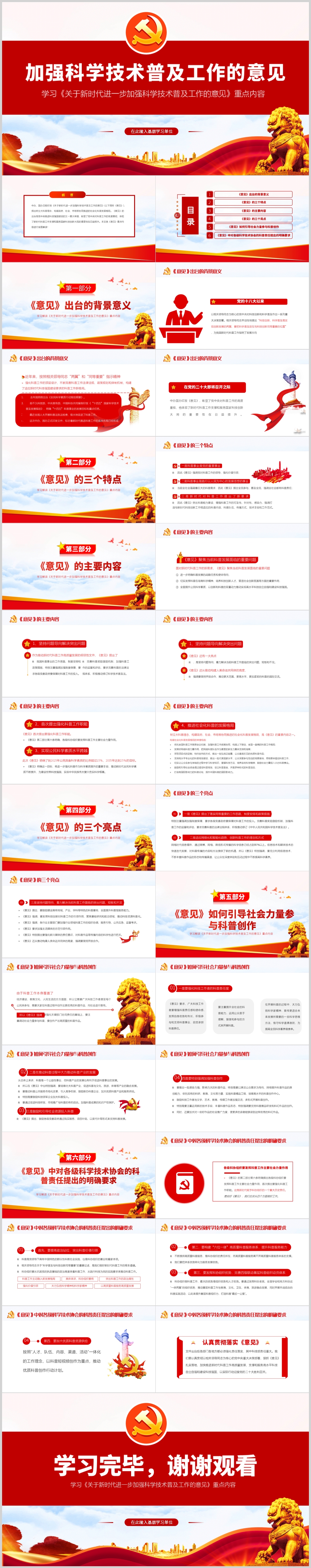 关于新时代进一步加强科学技术普及工作的意见ppt模板(内含WORD演讲稿)