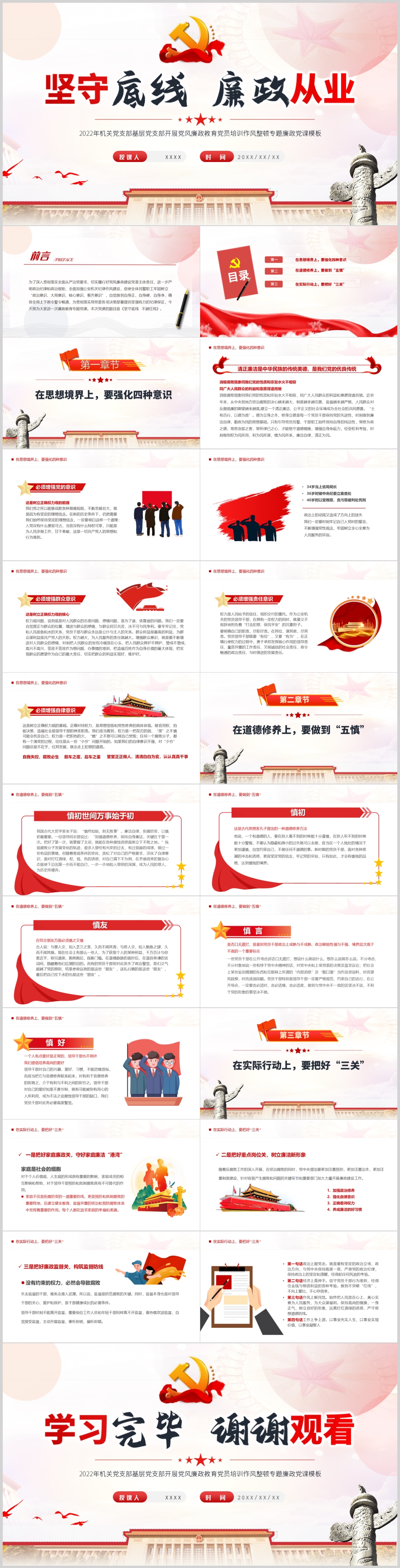 2022年党风廉政教育坚守底线不越红线党课PPT模板
