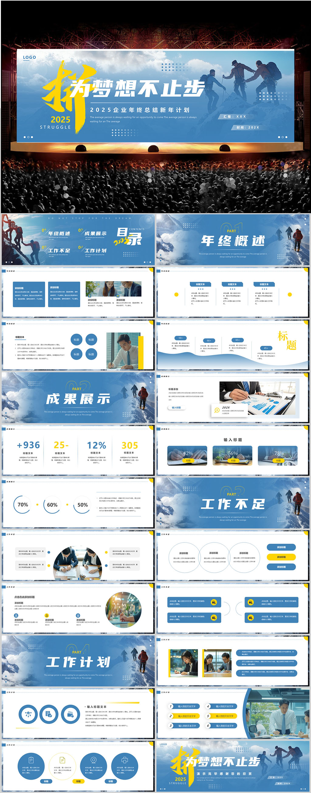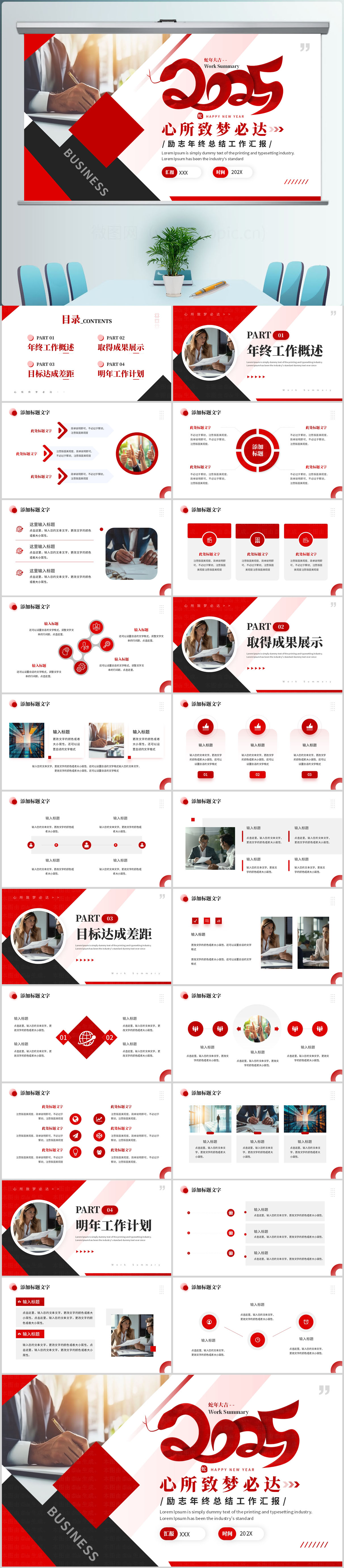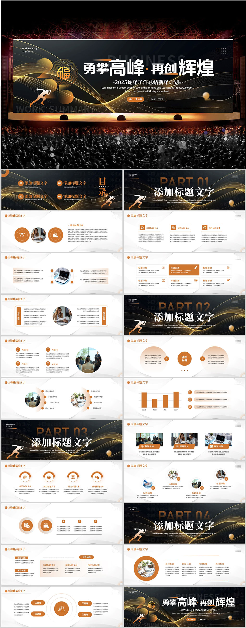 2025励志年终工作总结汇报宽屏ppt模板设计