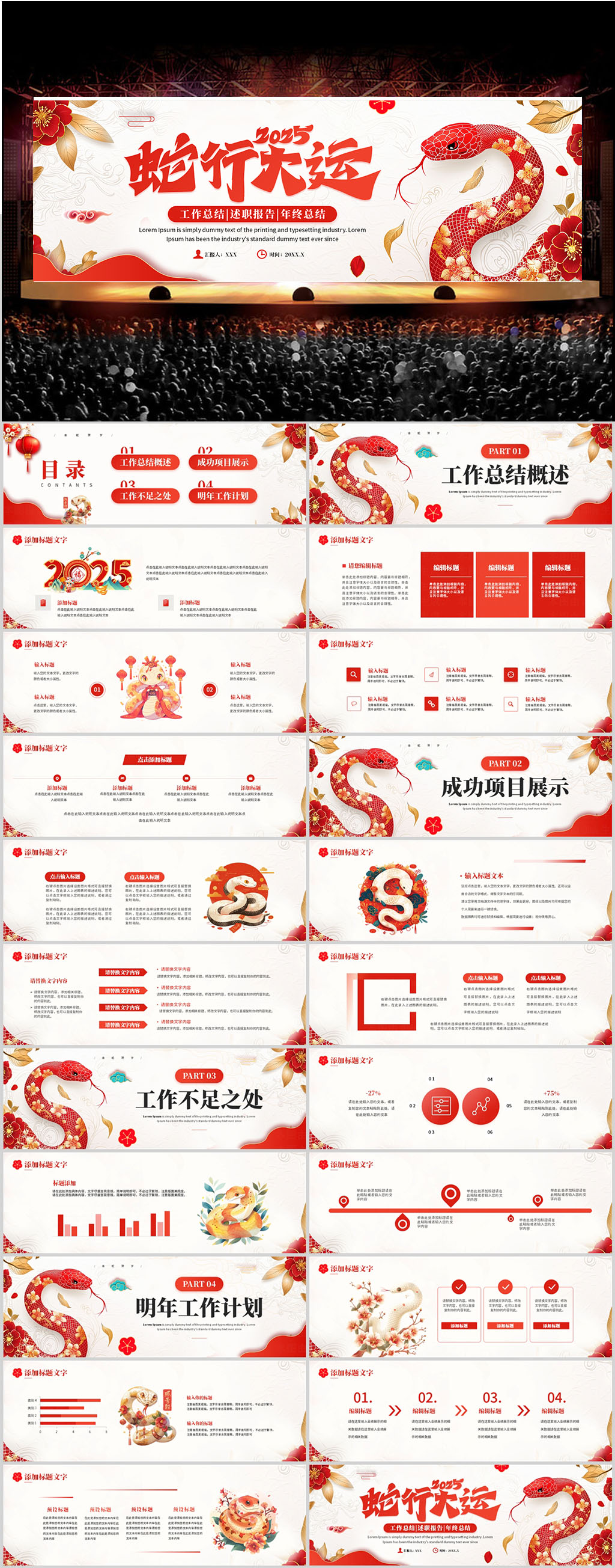 中国风2025蛇年行大运PPT宽屏模板设计
