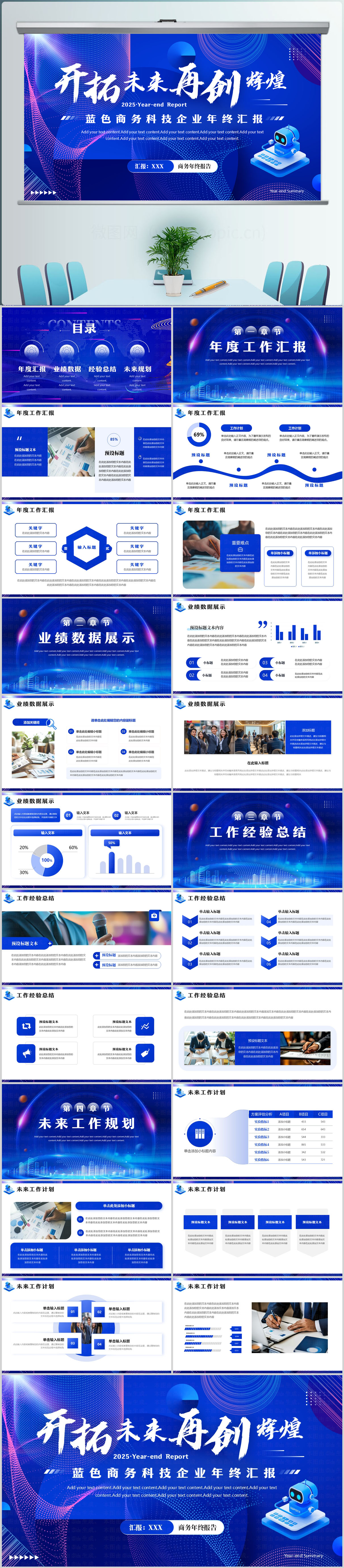 蓝色商务科技企业年终汇报PPT模版设计