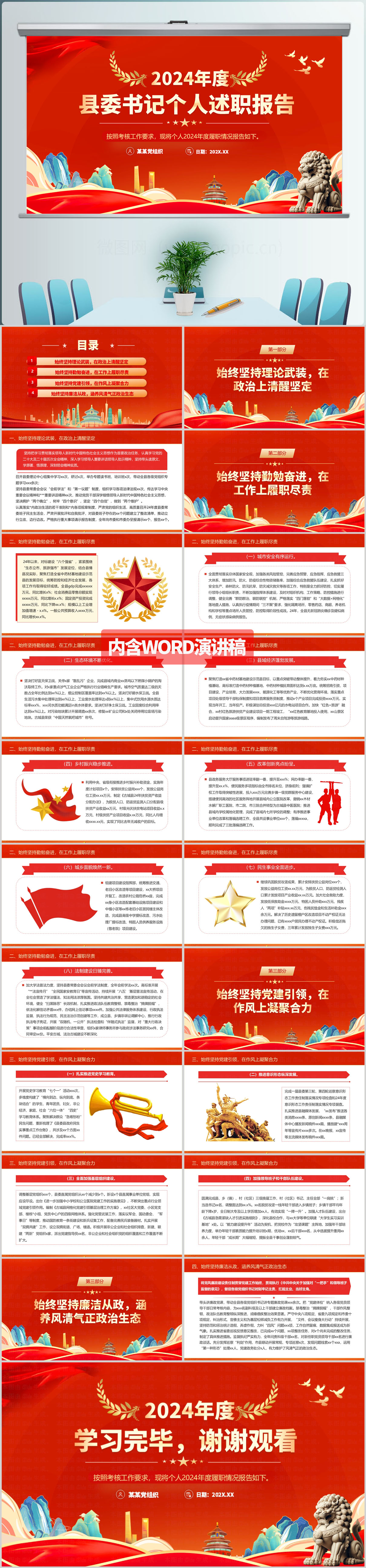 2024年度县委书记个人述职报告党建工作ppt模板(内含WORD演讲稿)