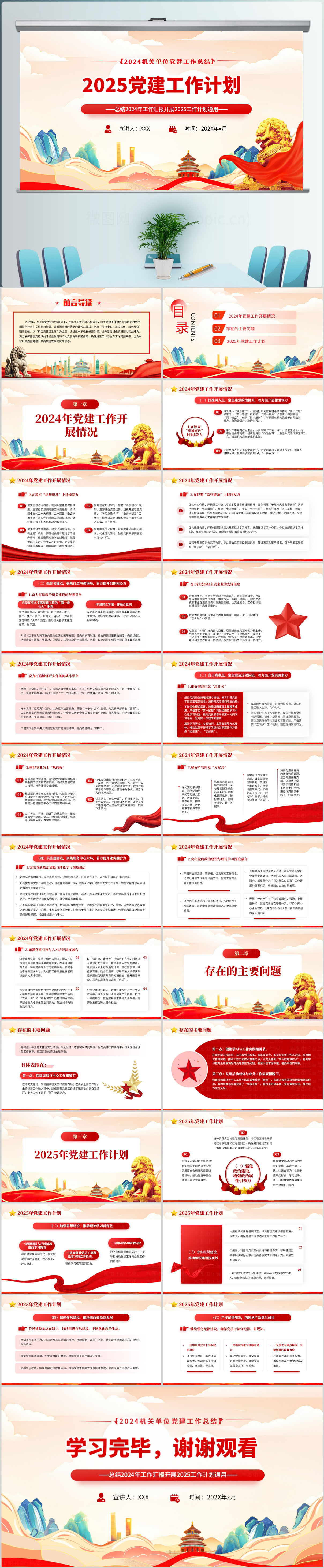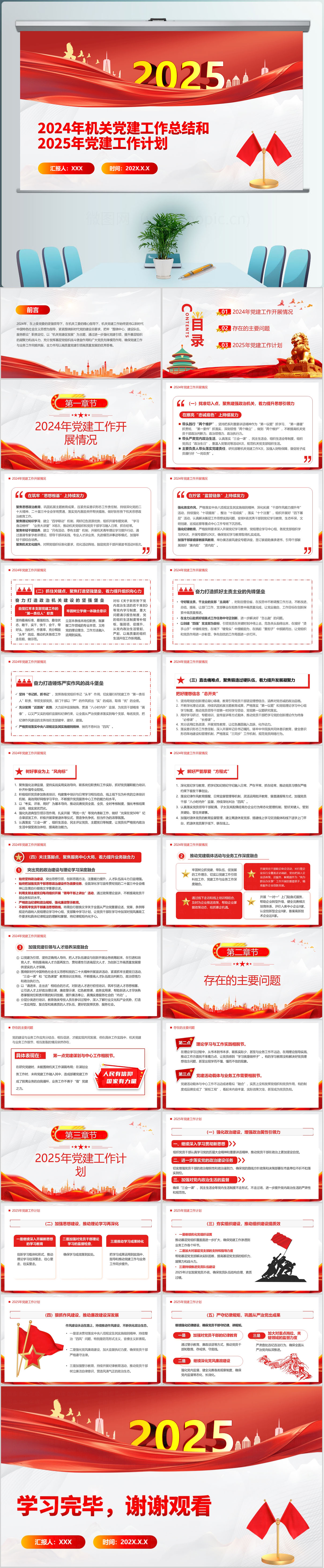2024年机关单位党建工作总结和2025年工作计划通用PPT模板