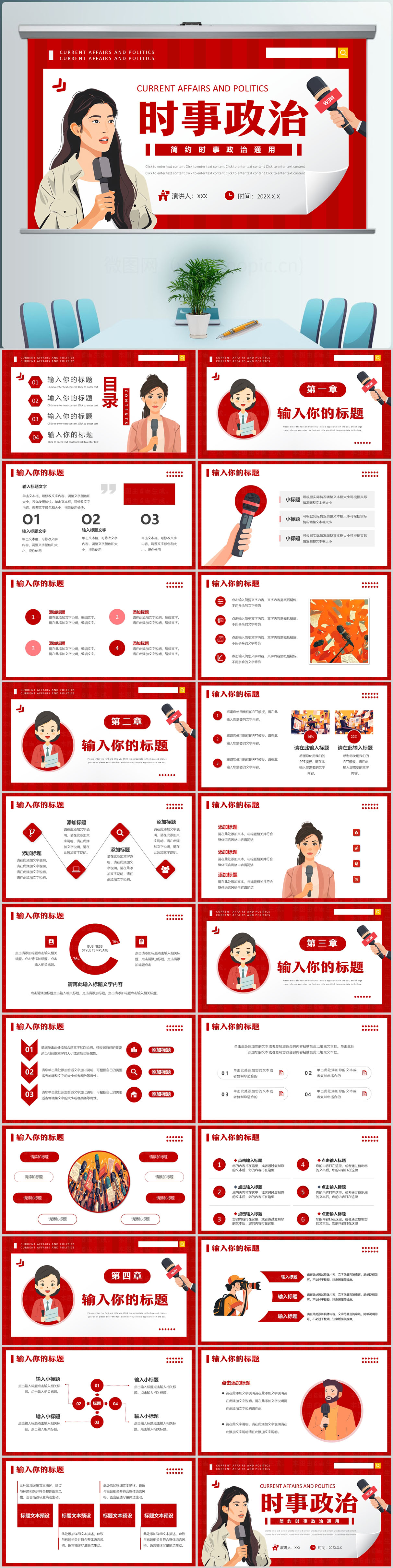 红色时事政治时政新闻PPT模板设计