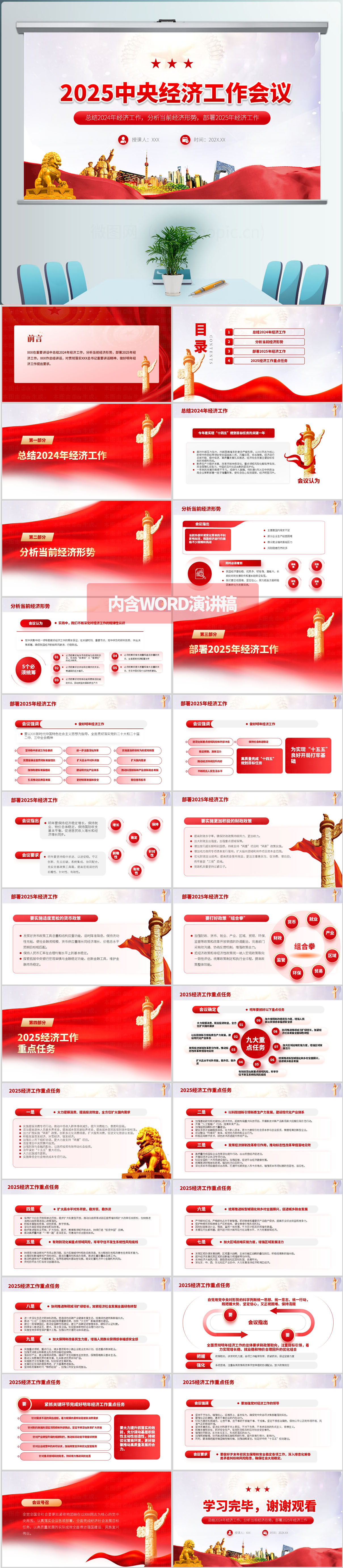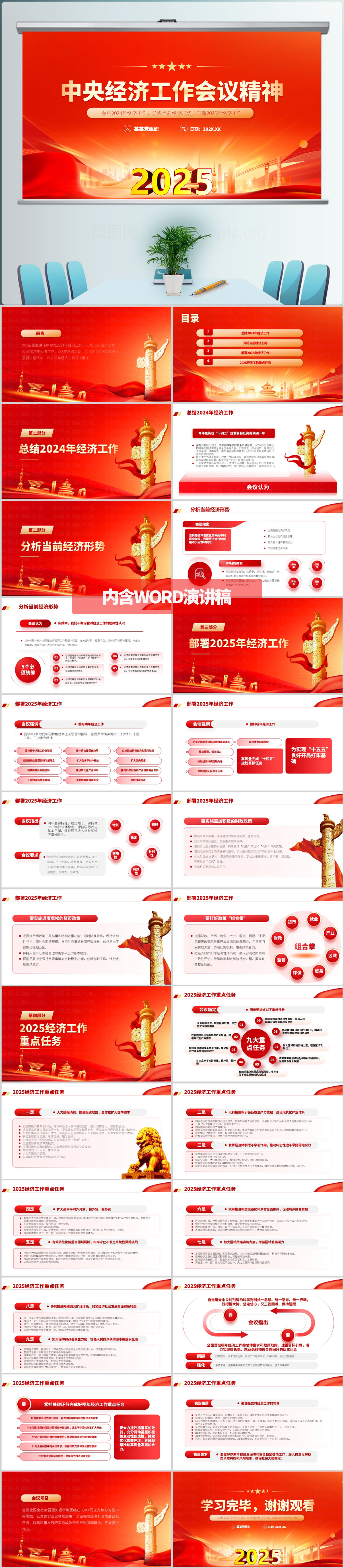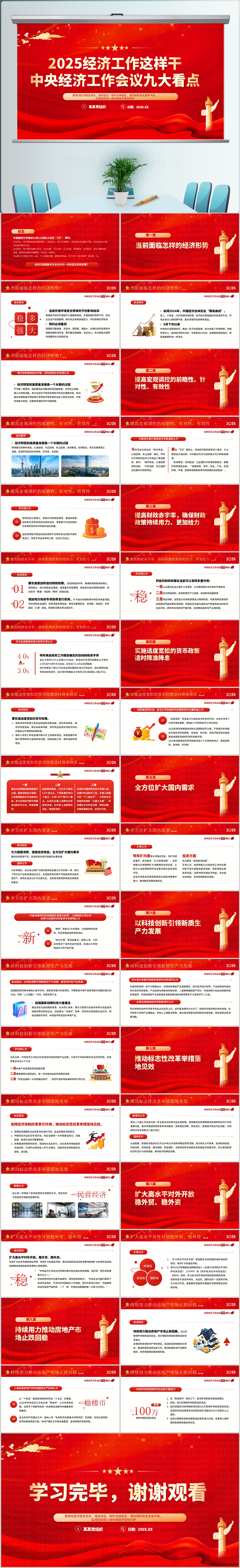 红色大气2025中央经济工作会议学习解读ppt模板(内含WORD演讲稿)