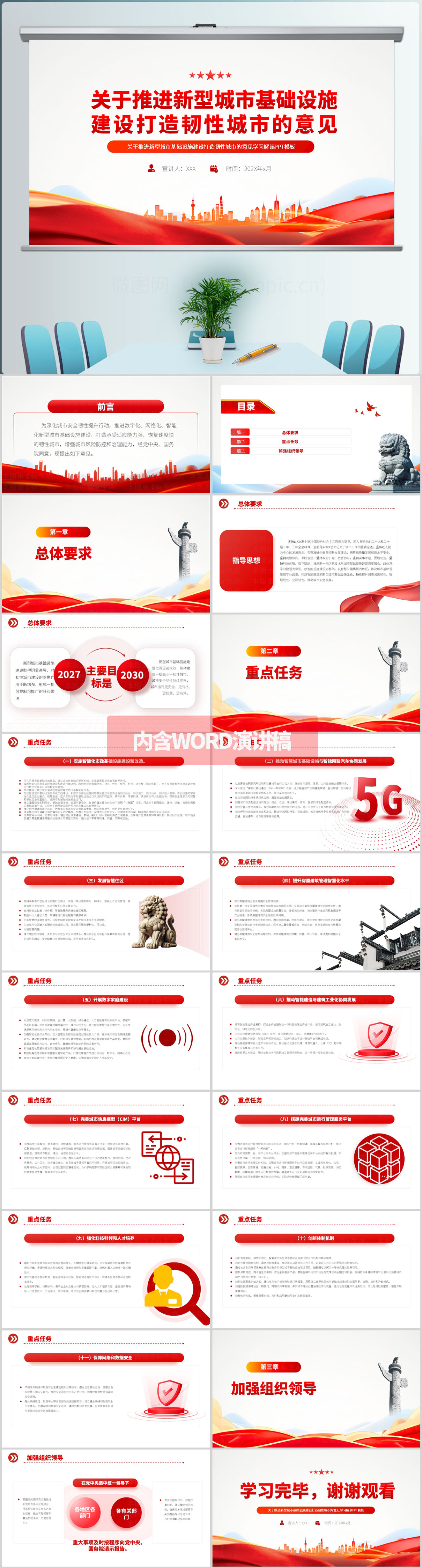 关于推进新型城市基础设施建设打造韧性城市的意见ppt模板(内含WORD演讲稿)