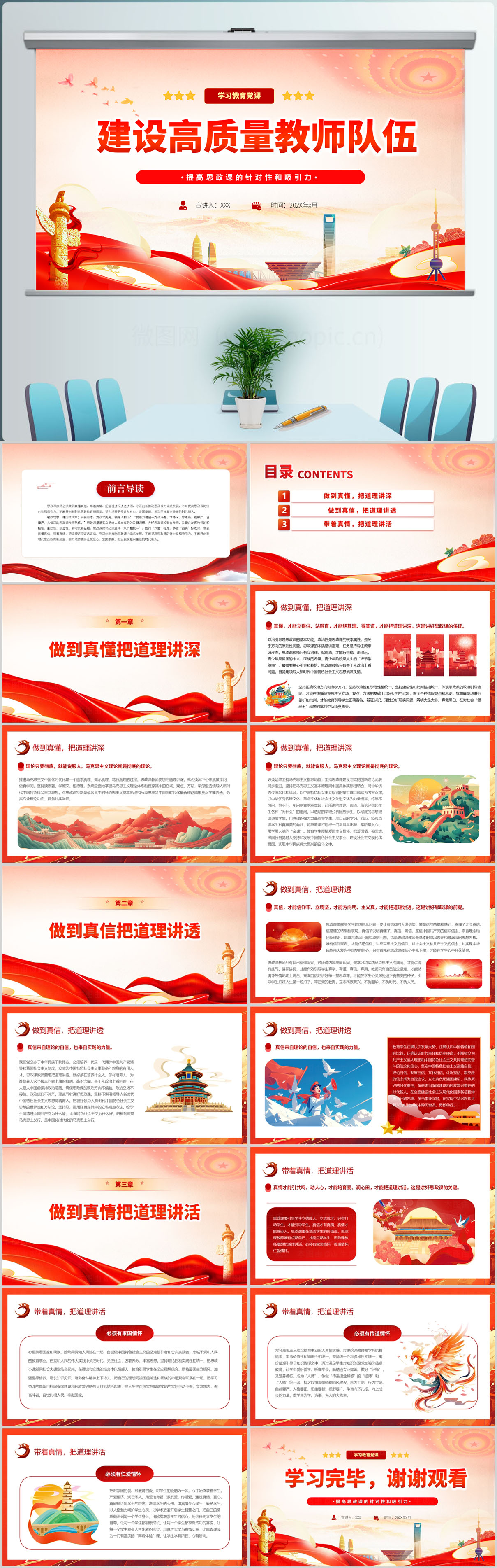 建设高质量教师队伍提高思政课的针对性和吸引力教育党课ppt模板
