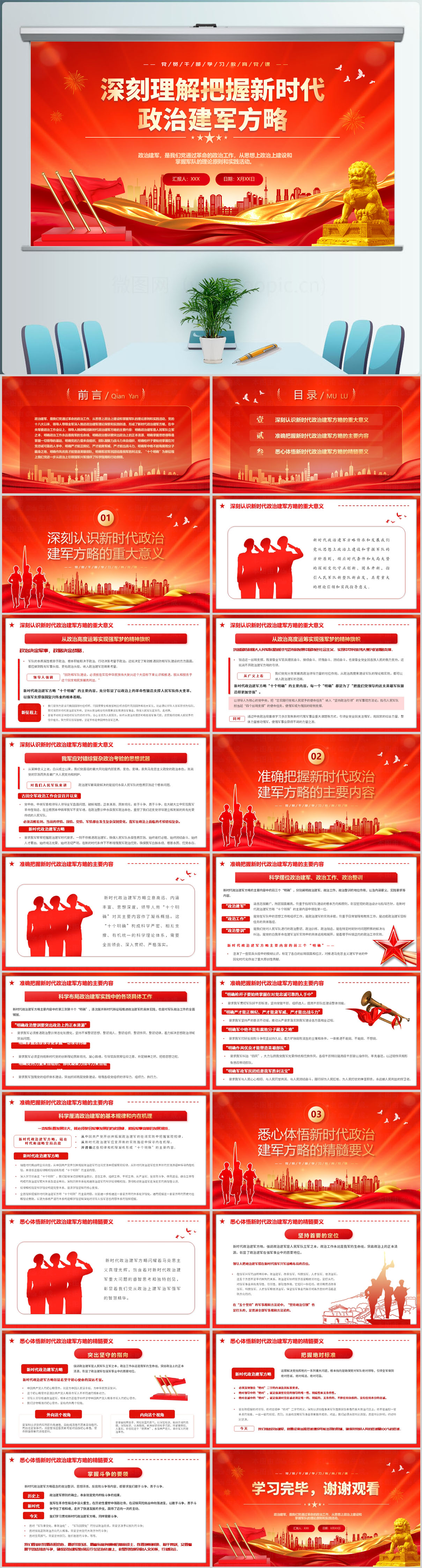 红色大气深刻理解把握新时代政治建军方略党课ppt模板