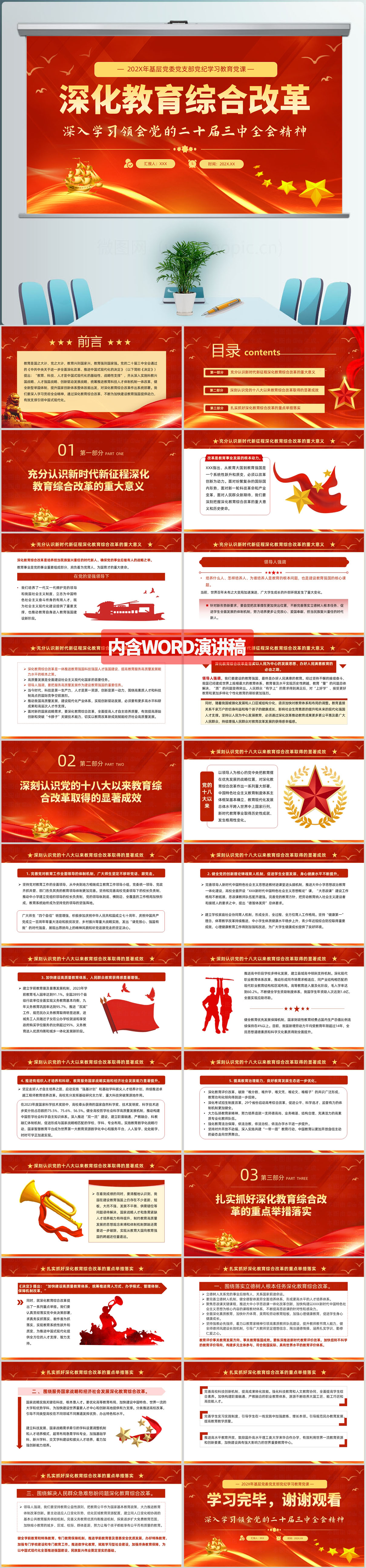 深化教育综合改革领会党的二十届三中全会精神党课ppt模板(内含word演讲稿)