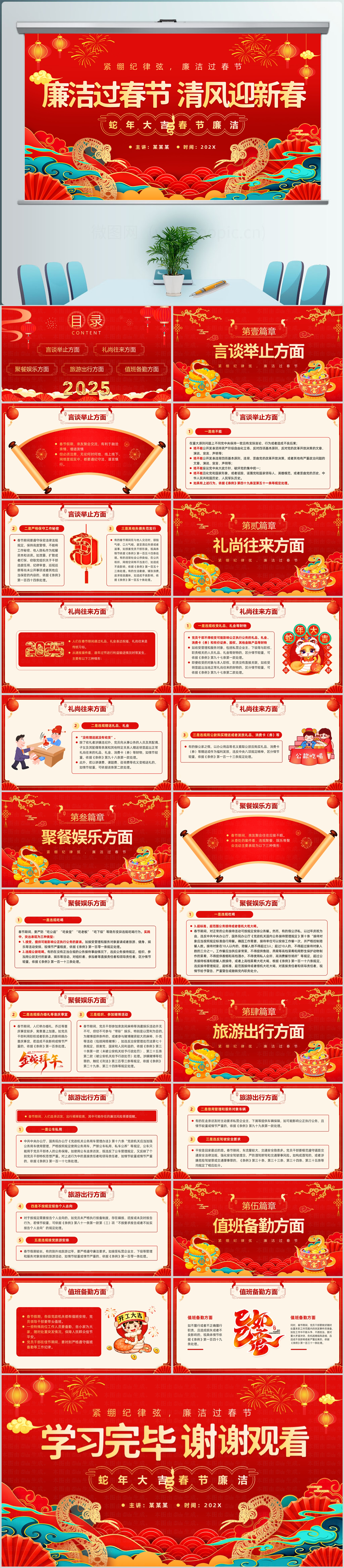 红色廉洁过春节清风迎新春廉政教育党课ppt模板