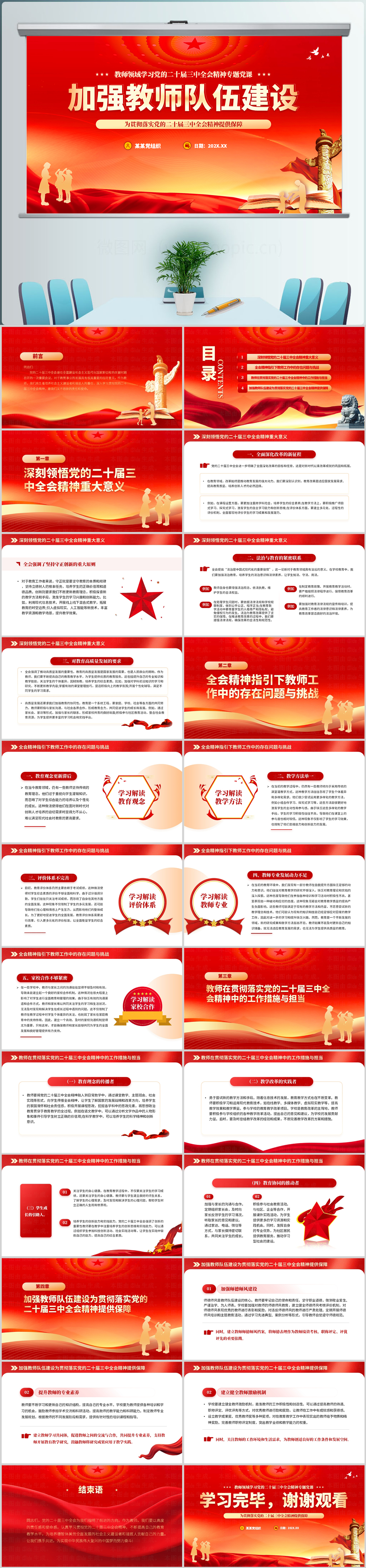 红色风加强教师队伍建设学校党课ppt模板