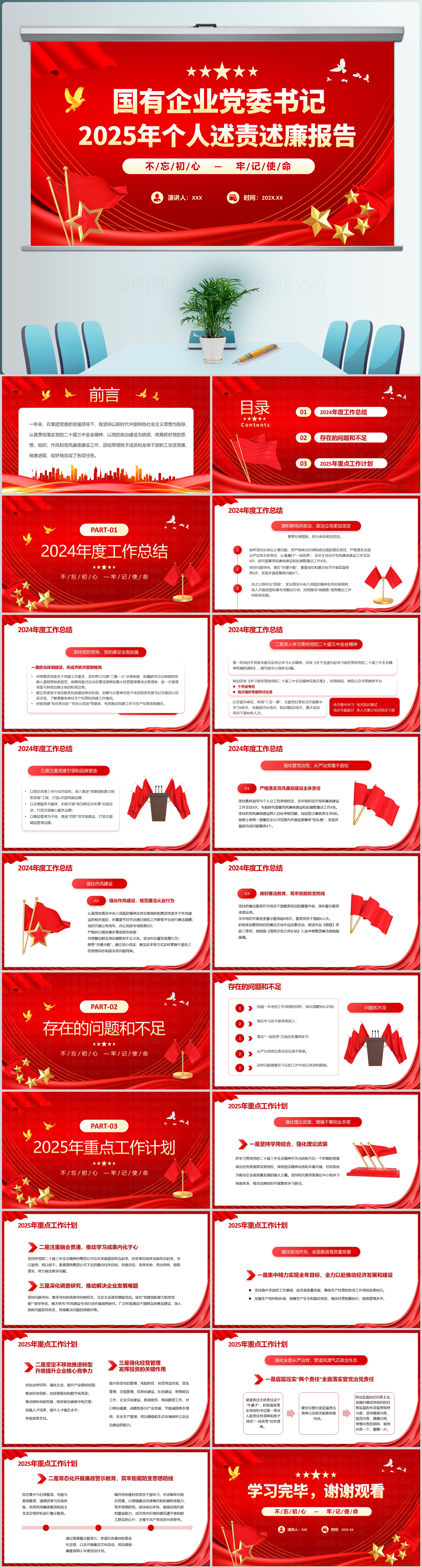 红色风国有企业党委书记2025年个人述责述廉报告ppt模板