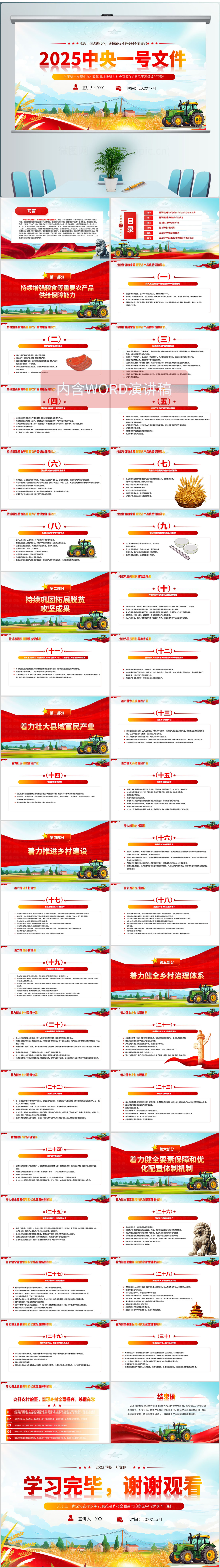 2024中央一号文件解读乡村全面振兴党课ppt模板(内含WORD演讲稿)