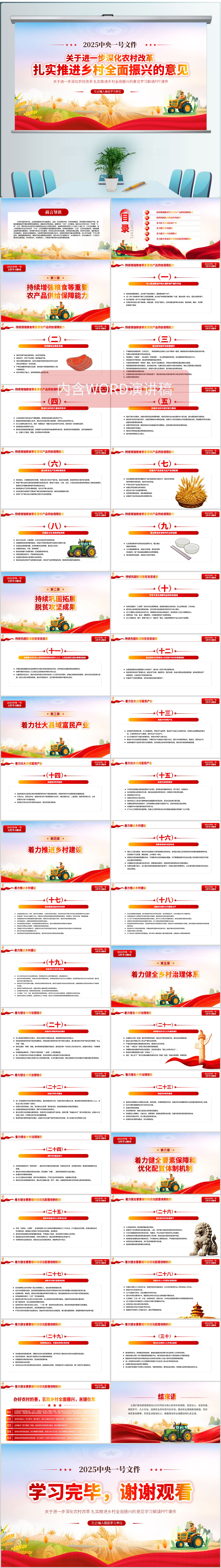 2025中央一号文件扎实推进乡村全面振兴的意见解读ppt木模板(内含WORD演讲稿)