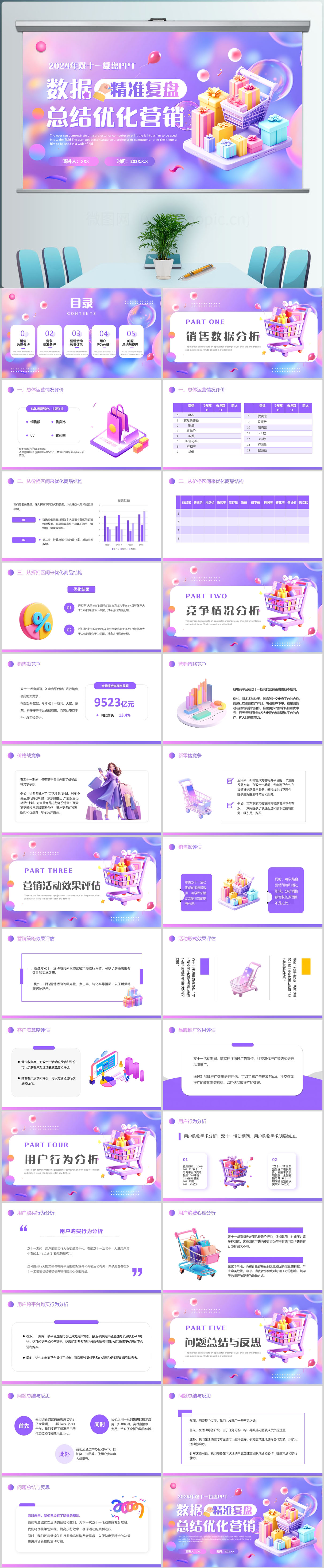 紫色双十一提前购电商活动策划ppt模板设计