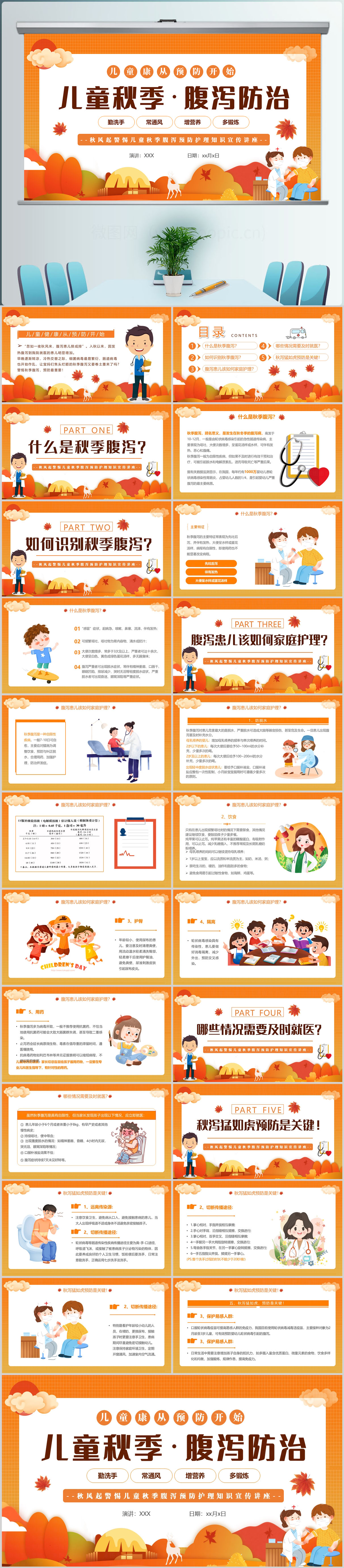 儿童秋季腹泻防止及预防PPT模版设计