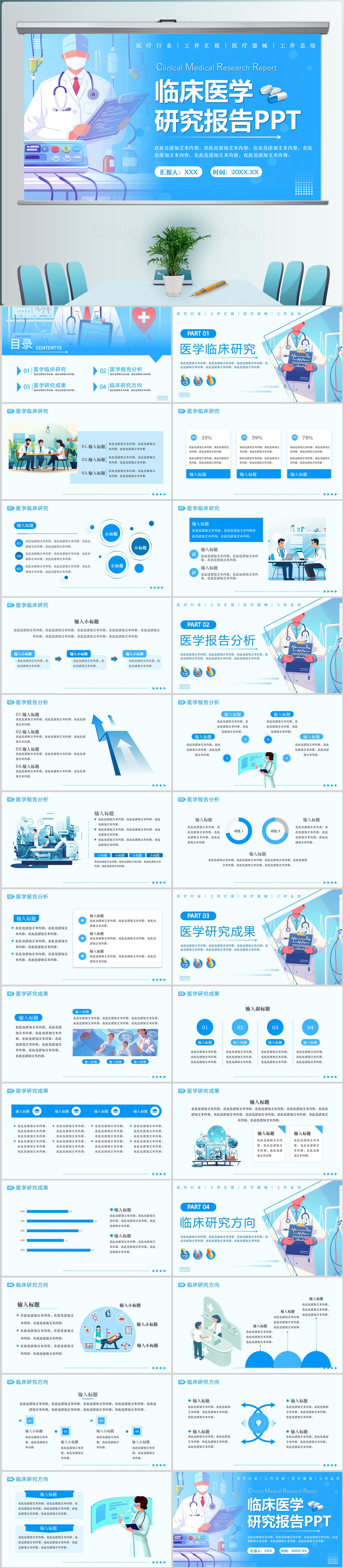 蓝色扁平临床医学研究报告PPT模板设计