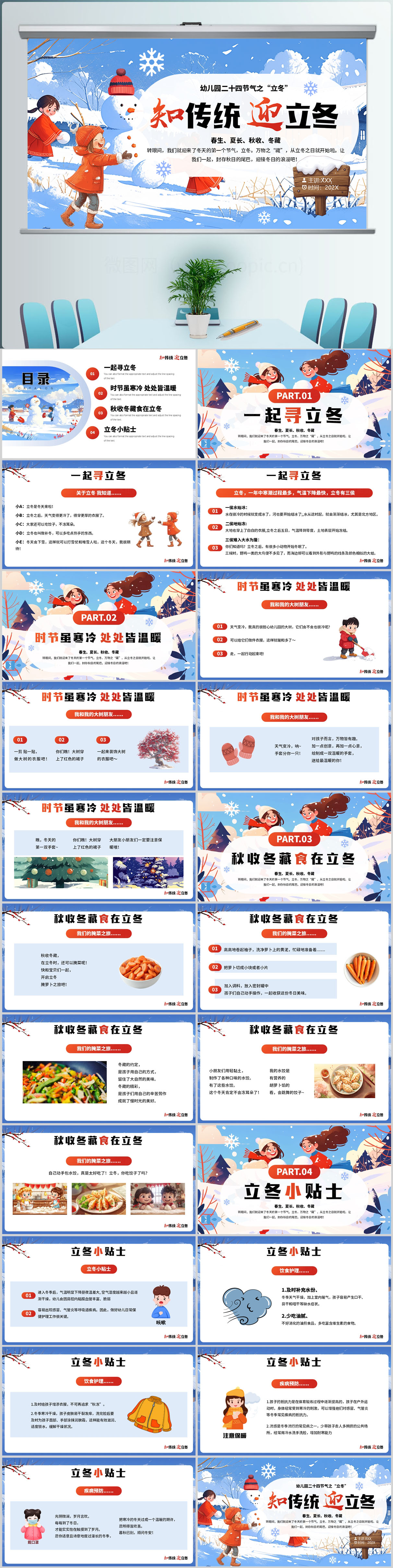 卡通手绘立冬介绍二十四节气传统节气PPT模板设计