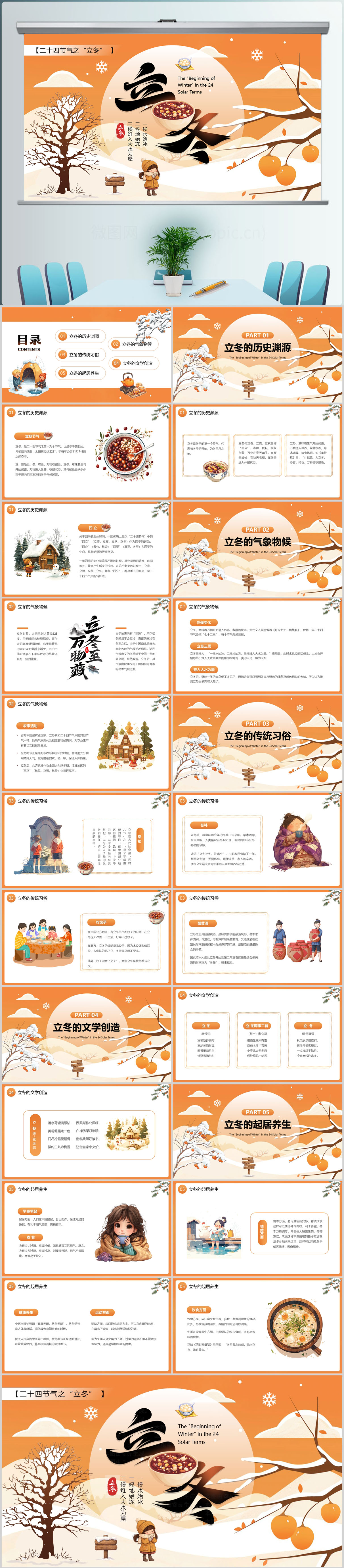 立冬传统节气介绍PPT模板设计