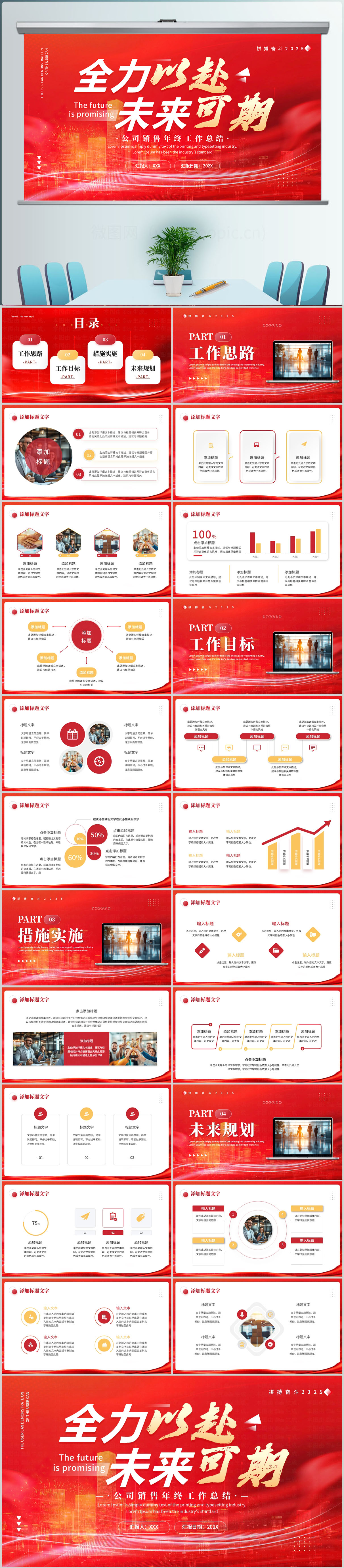 红色励志商务风全力以赴未来可期PPT模板设计